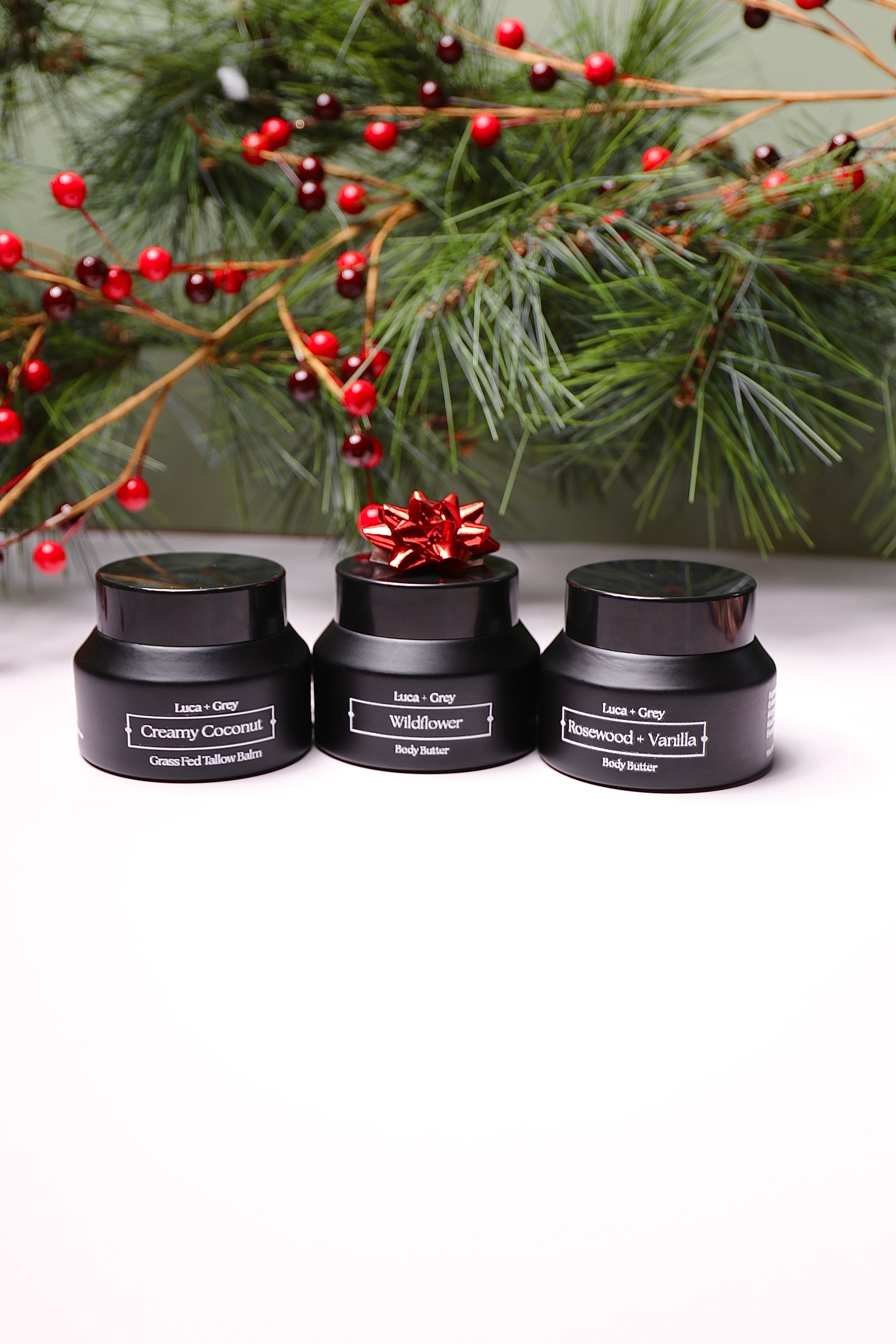 Three artisanal blends handcrafted from grass-fed tallow, shea butter, and cold-pressed botanicals — formulated to deeply nourish and restore the skin’s natural radiance.