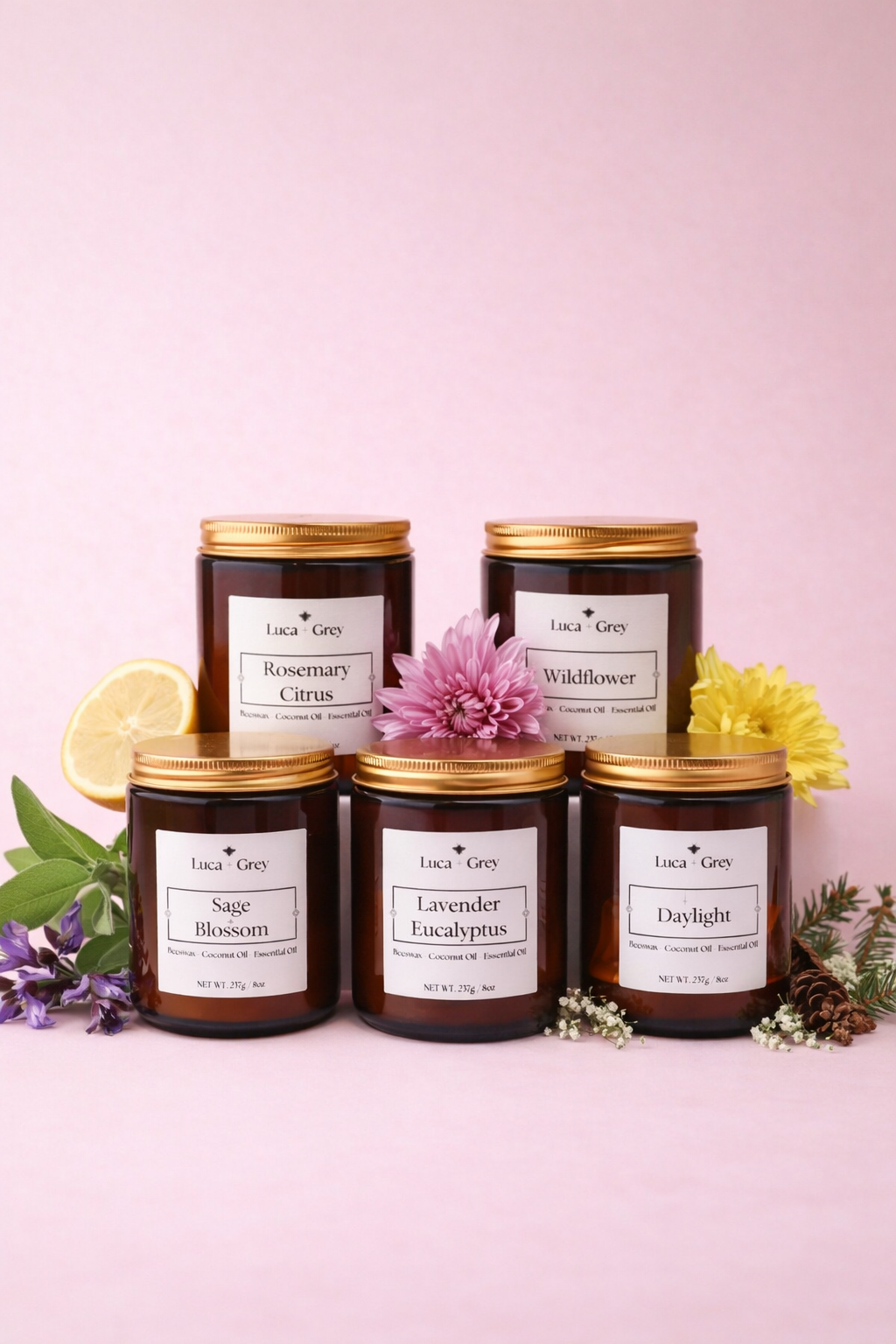 Luca Grey Candles are crafted with lead-free cotton wicks, natural beeswax, coconut oil and premium essential oils. We pride ourselves on using sustainable materials to create a clean, long-lasting burn.